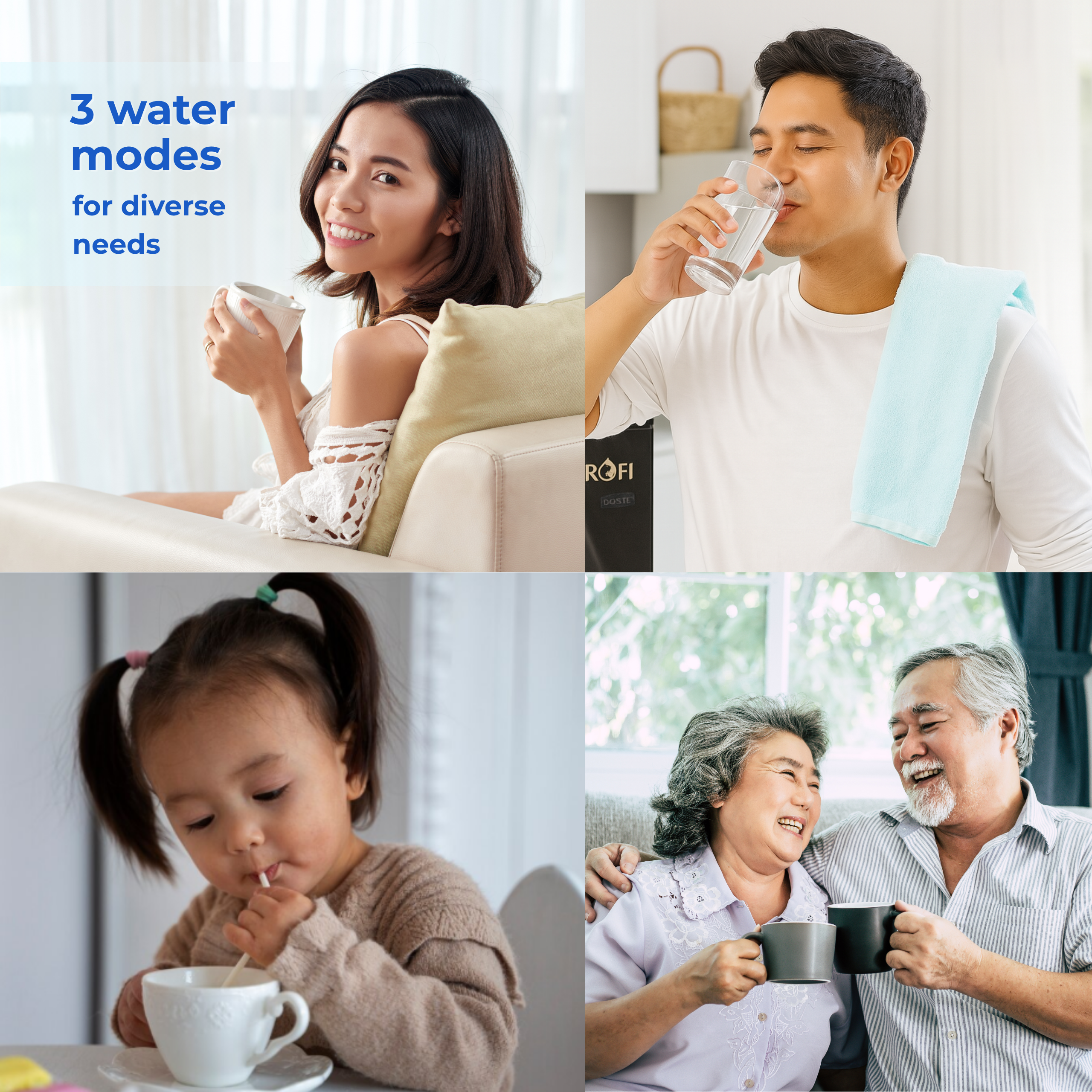 Nikmati hidrasi tiga mode dengan air panas cepat, air dingin mendalam, dan air ambient, yang ditingkatkan oleh filtrasi Smax canggih dan manfaat hidrogen: